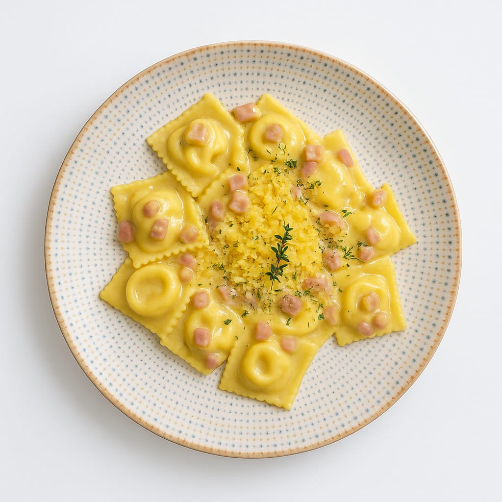 Massa artesanal tagliolini (espaguete 130g) ao molho bechamel ou sugo, batata frita (50g), nuggets (2 unidades).